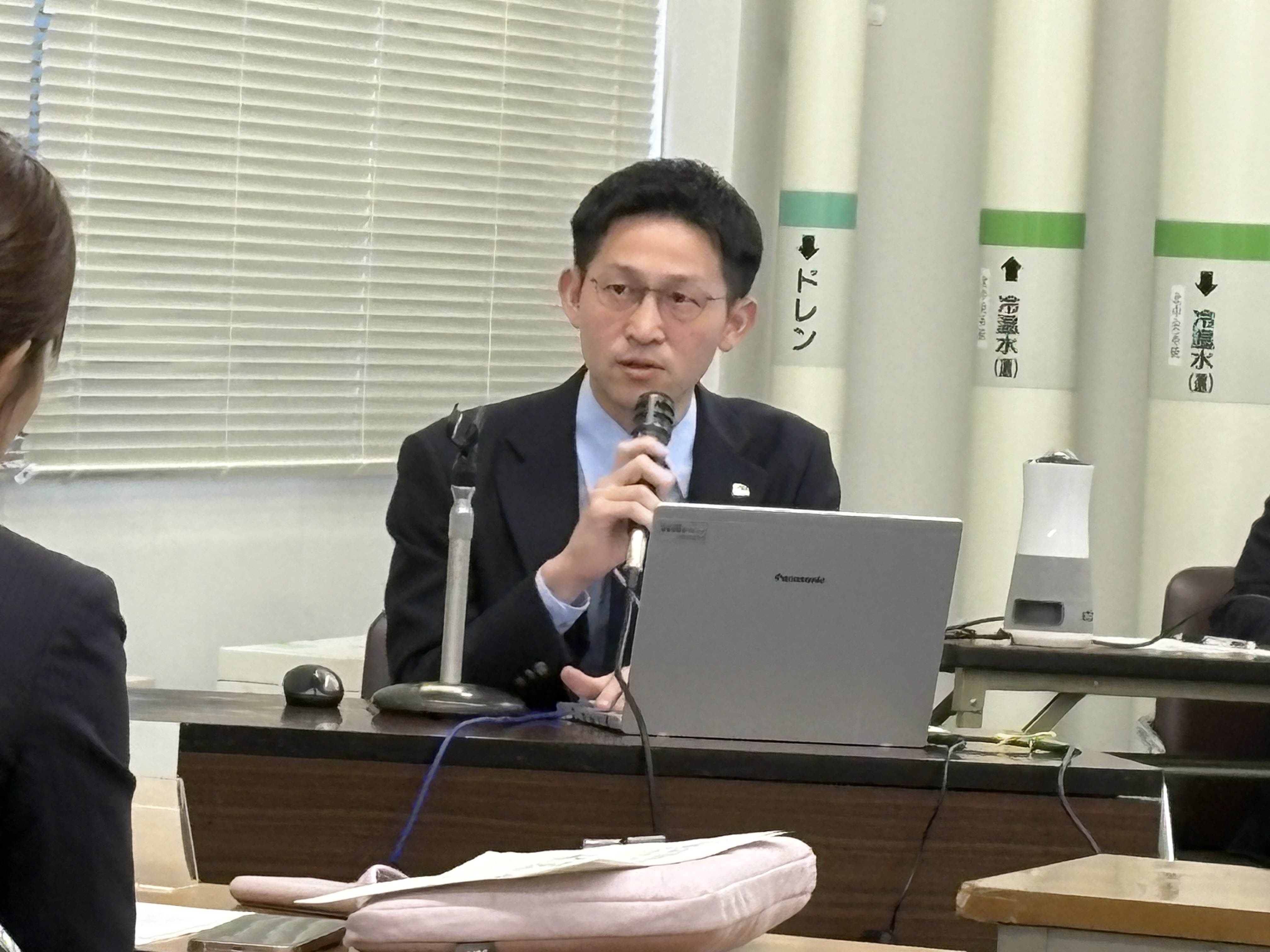 「生活習慣病に対する企業の取り組み」をテーマに総務部森本主任が講演を行いました。